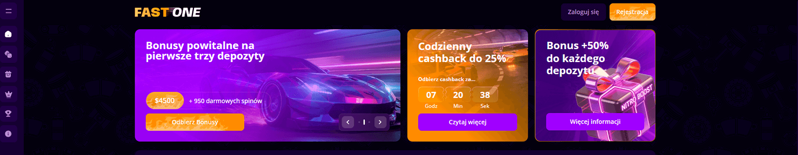 F1 Casino to platforma hazardowa online, na której mieszkańcy Polski i innych krajów mogą korzystać z szerokiego wyboru gier. Kasyno obsługuje waluty EUR i PLN, co czyni je wygodnym wyborem dla polskich graczy. F1 Casino wyróżnia się na tle konkurencji w kilku obszarach: platforma oferuje szybkie wypłaty realizowane w ciągu 24 godzin, kładzie duży nacisk na bezpieczeństwo w celu ochrony danych graczy oraz zapewnia prostą rejestrację, dzięki której zaczniesz grać w kilka minut.